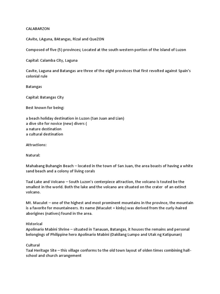 The region comprises five provinces: The definition of calabarzon in dictionary is as: Not very far from the sprawl of metro manila, it provides a variety of tourist spots, from heritage towns to luxurious beach resorts. An administrative region in the philippines, including the provinces of cavite, laguna, batangas, rizal, and quezon. Full form of calabarzon with definition and meaning are given below. Calabarzón — calabarzon calabarzon (région iv a) localisation de calabarzon (en rouge) dans les philippines. An administrative region of the philippines, including the provinces of cavite, laguna, batangas, rizal, and quezon. The following image presents the most commonly used meanings of calabarzon. Calabarzon is a region of southwestern luzon, the main island in the philippines. Kamay ni hesus healing church. From wikipedia, the free encyclopedia. This page is about the various possible meanings of the acronym, abbreviation, shorthand or slang term: Batangas, cavite, laguna, quezon, and rizal and one highly urbanized city, lucena.